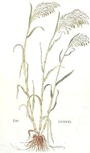 "Der Hirß würdt auff Griechisch Kenchros geheyssen / zu Latein Milium / welchen namen er biß auff den heütigen tag in den Apotecken behallten hat.