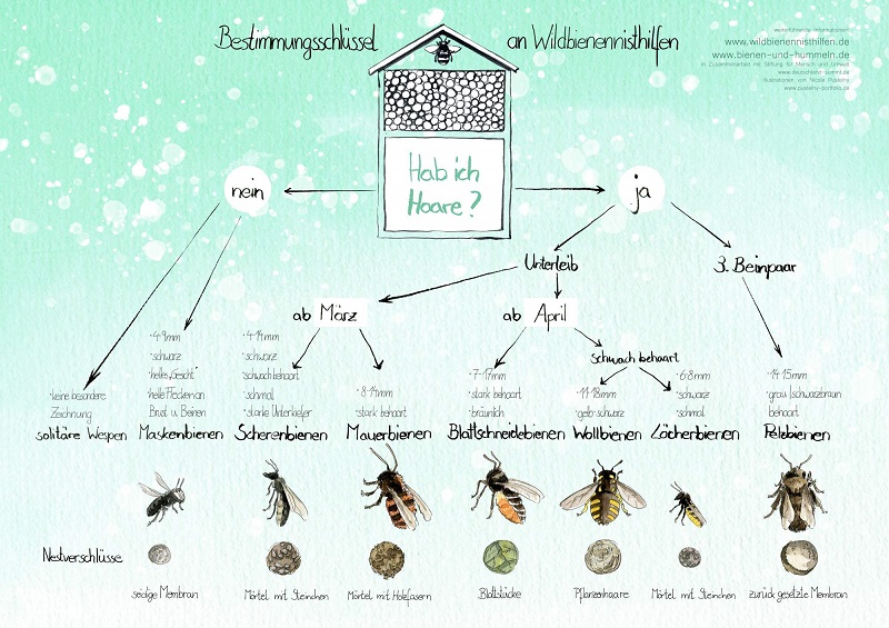 Wildbienen-Bestimmungsschlüssel an Nisthilfen