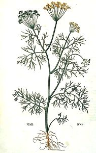"Dyll / oder Dyllkraut würdt zu Latein und auff Griechisch Anethum genent / welchen namen es in den Apotecken behalten hat biß hieher.