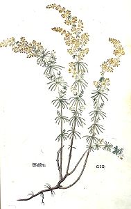 "Walstro würdt auch unser Frawen Weg oder Bettstro genent. Auff Griechisch und Lateinisch würt es Gallion / Galation / und Galeriu geheyssen / darumb das es die milch als ein renne zusamen tringt.