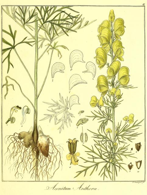 "Ehedem waren in dem Arzneyvorrath von dem Aconitum Anthora die Wurzel und die Blumen,