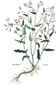 "Grindkraut würt von den Griechen Erigeron / von den Lateinischen Senetio geheyssen auß diser ursach / dann es im anfang des Lentzen so wol verblüet hat als mitten inn der ernd / unnd bringt mit sich ein grawe oder weisse wollen / die ist gleich dem grawen haar der allten menschen / wie wir sölchs weitleüffiger in unserm Lateinischen kreüterbuch haben angezeygt.