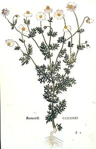 "Krottendyll würdt auch Hundßblum / unnd wilde Chamill genent. Auff Griechisch Parthenion / unnd Amaracon. Zu Latein Parthenium / Amaracum / Solis oculus / von ettlichen Cauta / zu unsern zeiten Cotula foetida / darumb das sie starck reucht / unn übel stinckt.