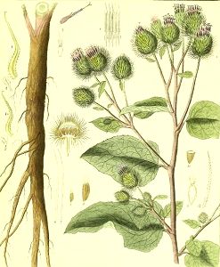 Sowohl von dem Arctium Lappa als auch von dem Arctium Bardana, was nach Linne nur eine Varietät von jenem war, werden die Wurzeln, Radices Bardanae, als Arzneymittel gesammelt. In ältern Zeiten bewahrte man in den Apotheken auch die Blätter und den Samen, Folia et Semen Bardanae, auf.