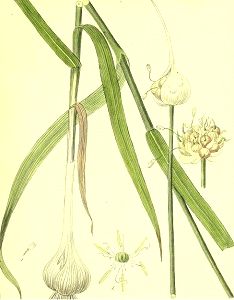 "Starkrichendes Lauch, Knoblauch, gemeiner Knoblauch, grasblättriger Knoblauch.