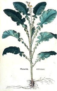 "Köl ist auff Griechisch Crambe genent / zu Latein Brassica sativa. Die Apotecker nennens Caulem. Ursachen aber sölcher namen haben wir im Lateinischen kreüterbuch angezeygt.
