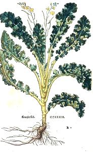 Der Köl ist gut zu erweychen den bauch / so er ein wenig gesotten würt. Wann er aber volkommenlich gesotten würt / so stelt er und erhertet den bauch / und das fürnemlich wann er zwey mal gesotten ist. Der im summer wechßt / schadet dem magen / und ist etwas scherpffer. Köl gesotten und gessen / ist nützlich denen so ein blöd gesicht haben / unnd zittern. So man Köl nach dem essen braucht / so nimpt er hinweg den schaden und nachteyl so auß überiger fülle / unn vom übermässigen weintrincken kompt. Die öbersten und zarten gipfflin von dem Köl / seind dem magen nützlich / seind aber etwas scherpffer / und zu treiben den harn krefftiger. Der safft vom Köl mit wein vermischt unn getruncken / ist nützlich denen so von natern gebissen seind. Mit meel und Foenograeco vermischt / unnd übergelegt / bekompt er wol denen so das Podagram und weetagen der glider haben / auch den alten unreynen schäden. Der safft in die nasen gethon / reynigt das haupt. Er bringt den frawen jre kranckheyt / mit Radten meel vermischt / ein zäpfflin darauß gmacht / unn in die muter gethon. Die bletter allein / oder mit gersten maltz zerstossen und übergelegt / seind gut zu allerley geschwulsten. Die bletter auff das haupt gelegt / behalten das har so anfahet außfallen. Die Kölbletter gesotten und mit hönig vermischt / heylen allerley umbfressende schäden. Row gessen auß essig / seind sie nützlich den miltzsüchtige. So sie einer im mund kewet / und den safft hinab schluckt / bringen sie die verlorne stimm wider. Köl gesotten und getruncken / lindert den stulgang / und bringt den frawen jre kranckheyt. Der same vertreibt die roßmucken unnd flecken under dem angesicht. Mit meth jngenommen / tödtet er die würm im bauch. Köl gesotten / unn in demselbigen wasser ein tüchlin genetzt und übergeschlagen / ist den spannadern oder nerven / und den gleychen seer bequemlich. Gedacht wasser heylet allerley wunden / so mans darauff legt / oder darmit wäscht. Der safft mit wein vermischt / unnd law in die ohren gethon / bringt das gehör widerumb. Köl ist dem wein unnd Weinreben widerwertig / darumb sie bey einander nit wol sein mögen. Man findt das ettlich von dem Podagra gesundt seind worden / die Köl gessen / und das wasser darinn Köl gesotten ist / getruncken haben. Köl mit alltem schmaltz vermischt / und übergelegt / ist seer gut zu dem weetagen der hüfft. Köl zerstossen und den safft darvon übergestrichen / vertreibt unnd verzert das undergerunnen blut / und andere blawe mäler. "