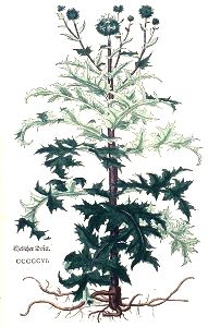 Wiewol wir noch kein besondere erfarung von disem schönen gewechß haben / doch nichts dester weniger haben wirs lassen cotrafayten umb seiner schöne willen / darmit jm andere auch vleissig nachgedechten / unnd erforschten wie es bey den alten geheyssen were. Dieweil und aber die Walhen dise distelköpff so sie noch jung seind bey den hünern und anderm fleysch kochen / wie auch den Strobildorn / acht ich das sie in der würckung unn natur auch nit weit von einander seind. Wer dieselbigen begert zu wissen der such sie oben an seinem ort."