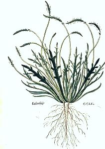 "Kräen oder Rappenfuß würt von den Griechischen Coronopus unnd Astrion / von den Lateinischen Pes cornicis und Sanguinaria genent. Ist den Apoteckern unbekant. Ist aber derhalben Kräen oder Rappenfuß geheyssen worde / das diß krauts bletter den Kräen füssen ettwas gleich seind. Es nennen ettlich diß kraut Herbam stellae / und Cornu cervinum. Welcher namen ursachen ich alle im Lateinischen kreüterbuch hab angezogen.