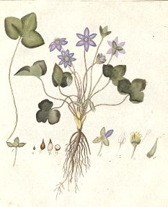 "Dreylappige Anemone, Leberkraut, Edelleberkraut, Güldenleberkraut, Herzkraut, Schwarzblätterkraut, blaue Märzblume, Leberblume, Leberklee.