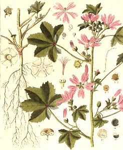 In Rücksicht des vorwaltenden Bestandtheils, nämlich des Schleims, und der davon abzuleitenden therapeutischen Eigenschaften scheint die Malva sylvestris von der Malva rotundifolia nicht verschieden zu seyn."