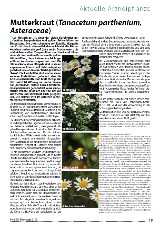 Heilwirkung: uterusstimulierend, beruhigend, schmerzstillend, fiebersenkend
