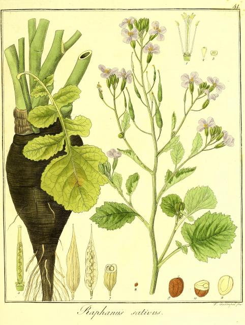 Zum Arzneygebrauch hat man den schwarzen Rettig, oder Rüberettig, Raphanus sativus s. niger,
