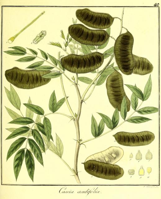 "Von der Cassia lanceolata, welche in Ägypten Sena-Mecky genannt wird, kommen die alexandrinischen Sennesblätter,