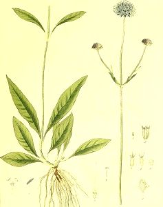 Von der Scabiosa Succisa sind die Wurzel und das Kraut Radix et Herba Succisae s.Morsus