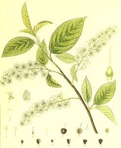 Das Gewächs enthält in allen seinen Theilen Blausäure, vorzüglich aber in den Blumen und in der Rinde. Soll letztere aber sehr reichhaltig an Blausäure seyn, so muß sie, nach den Erfahrungen des Herrn Apotheker Bergemann, im Frühjahr, kurz vor dem Aufbrechen der Knospen, von nicht zu starken Zweigen gesammelt werden, wo sie dann auch durch die Destillation mit Wasser ein in demselben zu Boden sinkendes ätherisches Öhl liefert."