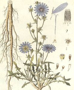 Von dem Cichorium Intybus werden die Wurzeln und das Kraut, Radices et Herba Cichorii, gesammelt, so wie man auch sonst, in ältern Zeiten, die Blumen und den Samen, Flores et Semen Cichorii, aufbewahrte, wovon letzterer mit zu den vier kleinen kühlenden Samen, Semina quatuor frigida minora, genommen wurde.