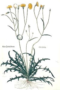 "Habichkraut würdt auff Griechisch unnd Lateinisch Hieracium und Sonchites geheyssen. Ursachen aber diser und anderer namen haben wir nach der leng in unserm Lateinische kreüterbuch erzelt. Hie ist genug zu wissen / das diß kraut ist auß keiner anderer ursachen Habichkraut genent worden / dann das die Habich mit dem safft dises krauts jre augen netzen / unnd das gesicht darmit scherpffen und stercken.